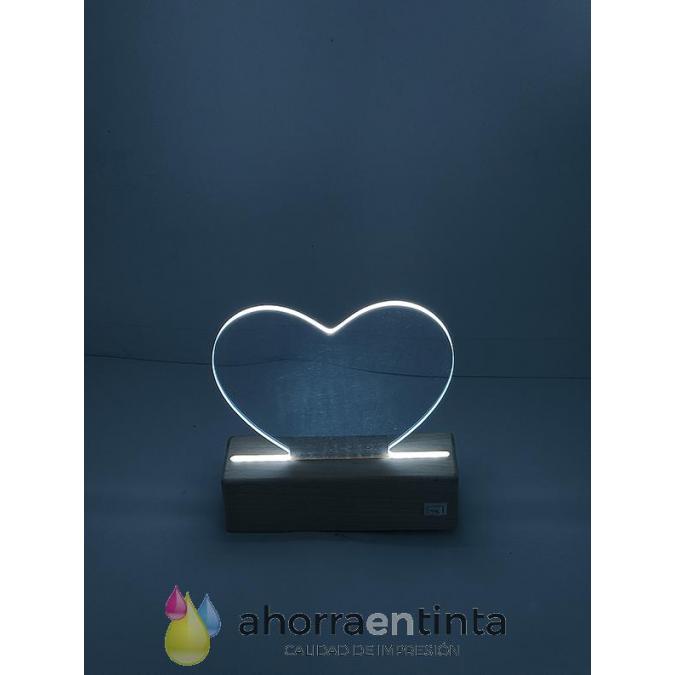 Base rectangular de madera led con metacrilato con forma de corazon para que la puedas personalizar con tu laser, vinilo, etc. ...