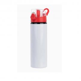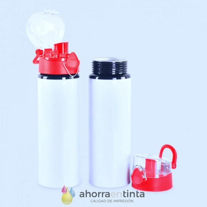 Bidón color blanco y tapa roja con cubierta transparente eyectable mediante botón.