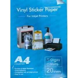 Papel adhesivo de vinilo imprimible Brillo A4 - Paquete de 20 hojas Imprima sus diseños con una impresora de inyección de tinta en nuestro papel de vinilo, déjelo secar durante 5 a 10 minutos, recorte su diseño al tamaño requerido, despegue y pegue.
