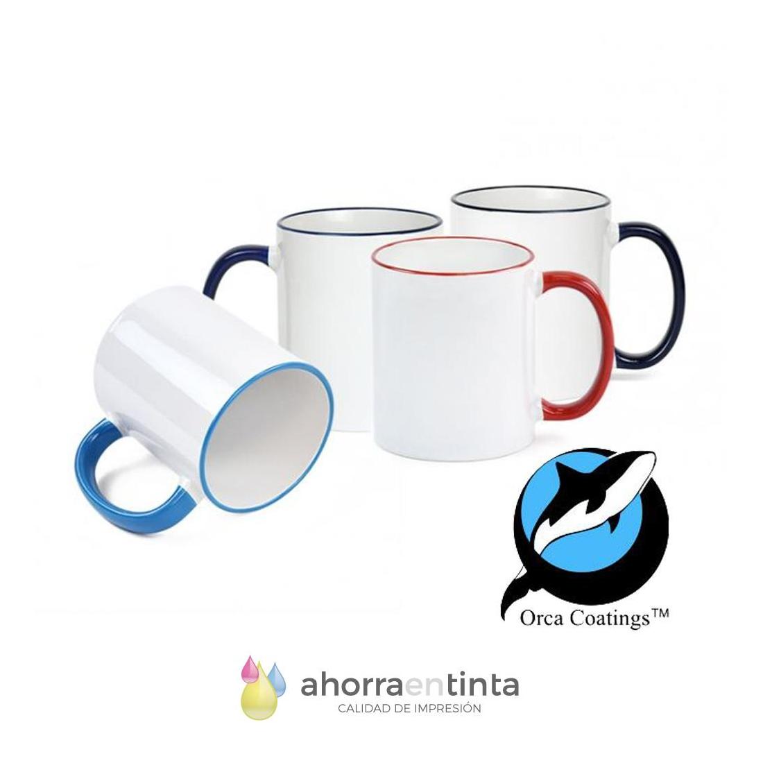Taza Sublimación Cerámica 11oz Calidad Orca con borde y asa en color a elegir