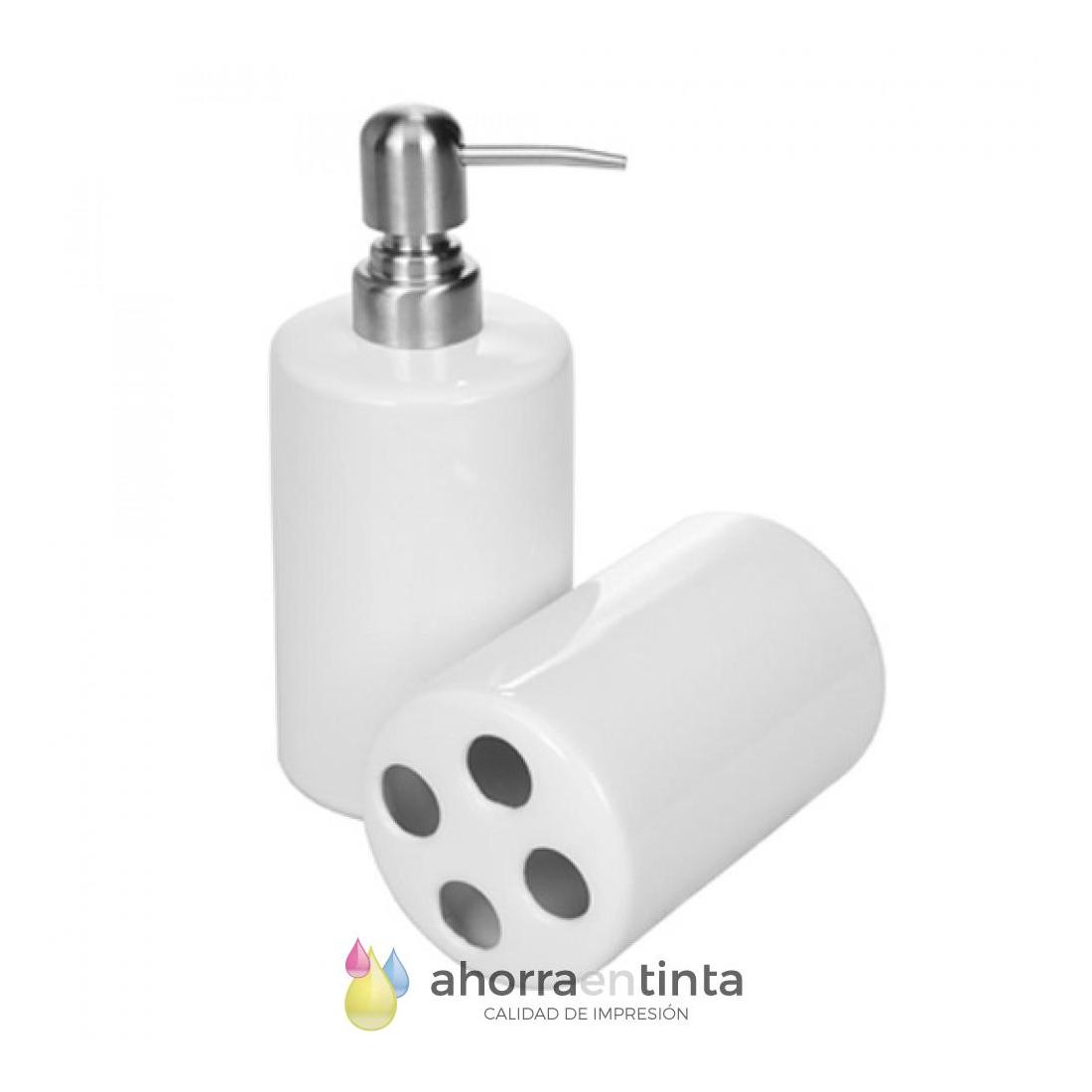 Juego de dispensador de jabón y porta cepillos en cerámica sublimable