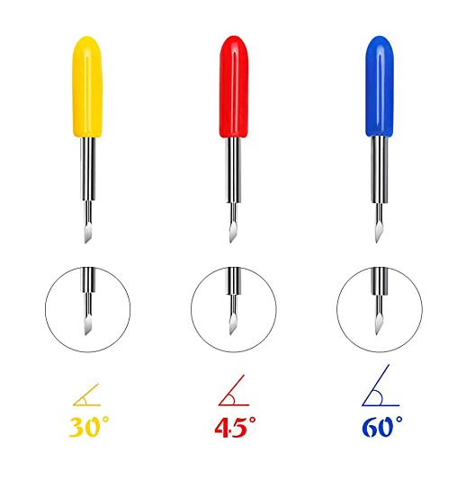 Los distintos usos de cuchillas de plotter de corte según su ángulo son: