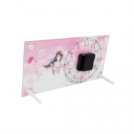 Portarretratos de cristal blanco 30x16x0,5 cm con reloj analógico