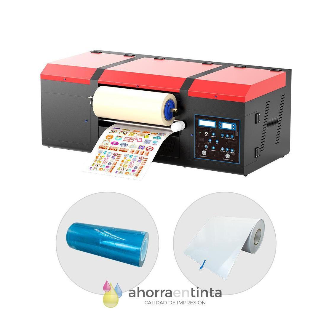 La diferencia entre una impresora normal UV y una UV-DTF, en la primera es necesario tener el producto final para poder imprimirlo, en UV-DTF podemos imprimir en los pliegos cualquier diseño para posteriormente poder implementarlo en distintos productos, con el consiguiente ahorro.