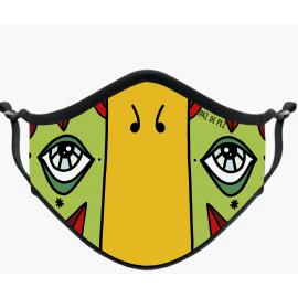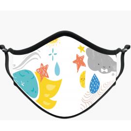 Mascarilla higiénica reutilizable Modelo DC, costura central, impresa full print y confeccionada con diseño aportado por el cliente. Material poliester, 2 tallas, lavable reutilizable
