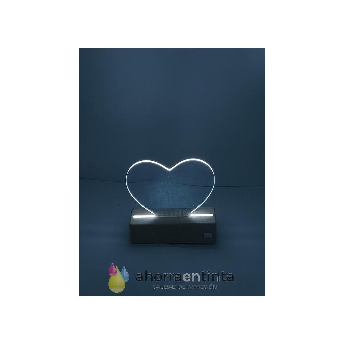 Base rectangular de madera led con metacrilato con forma de corazon para que la puedas personalizar con tu laser, vinilo, etc. ...