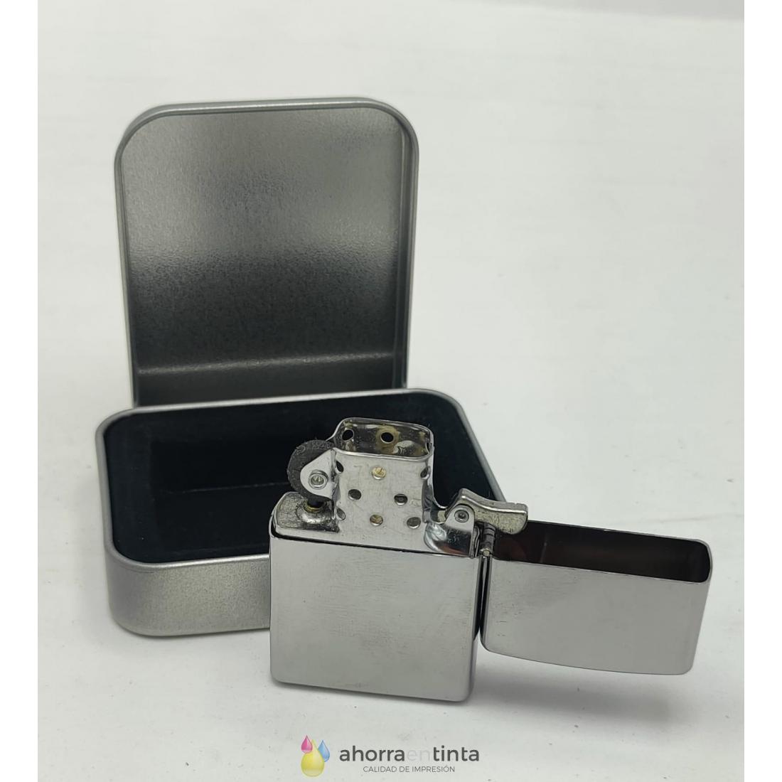 Los mecheros vienen en blister de carton con caja metalica sin gasolina.