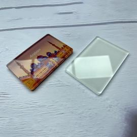 Piezas de plástico acrílico translúcido, con cantos redondeados, sublimables por una cara acompañadas de pieza de imán autoadhesiva