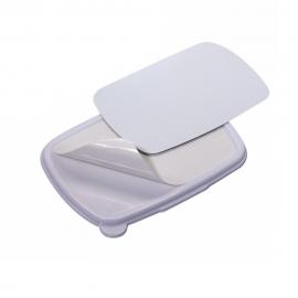 Viene provista de una placa de aluminio que sublimaremos y después pegaremos con su cara adhesiva sobre la tapa de la fiambrera