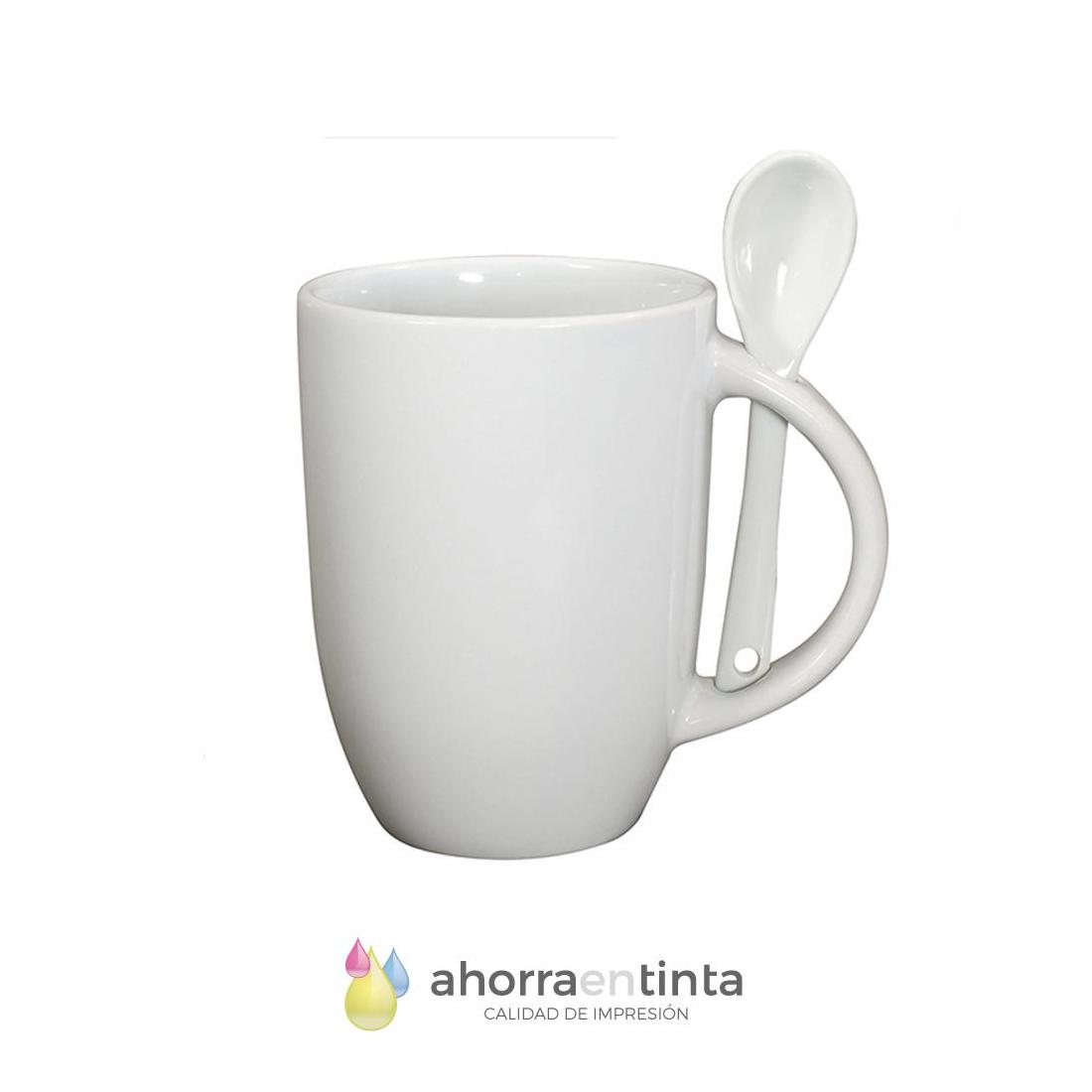 Taza de cerámica Blanca 12oz con cucharilla para sublimación