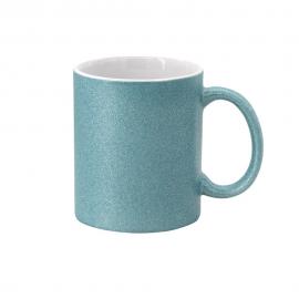 Taza sublimable de alta calidad acabado brillante purpurina en varios colores.