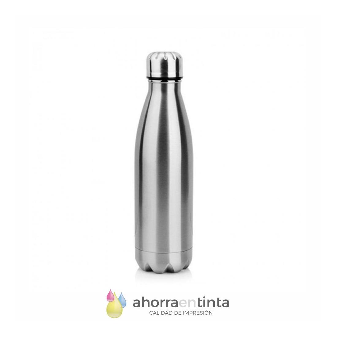 Bidón Acero Inoxidable Plateado 500 ml Forma Botella Cola para Sublimación