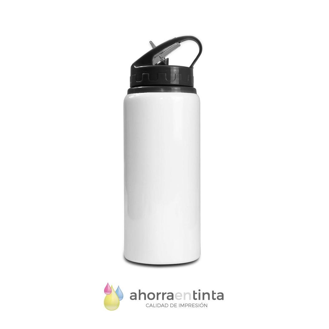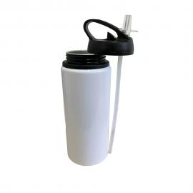 Bidón de Aluminio Blanco 600ml Sublimación - Tapa con Pipeta Plegable
