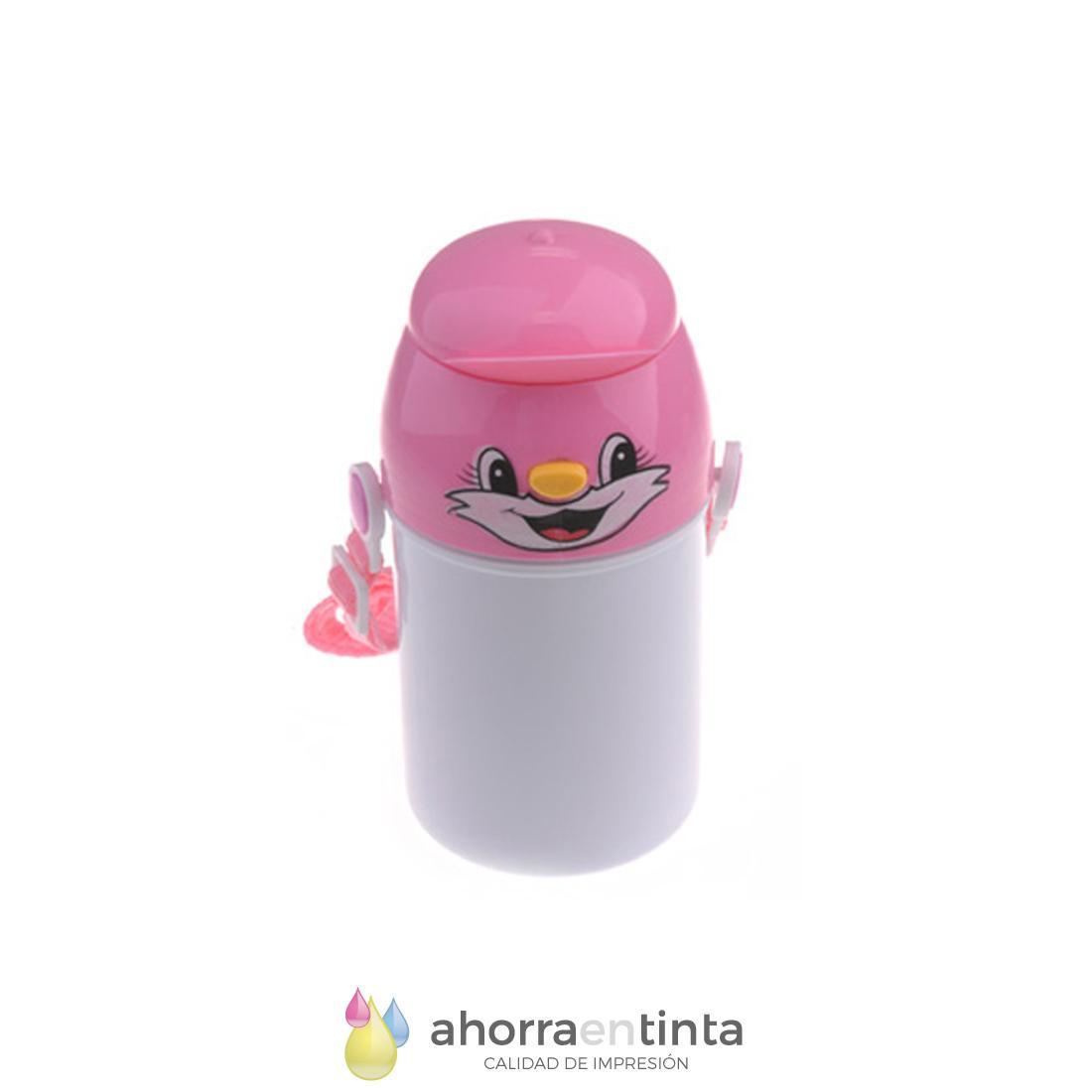 Bidón sublimable de plástico para niño con dosificador - color azul o rosa - Tapa detalle cara gato