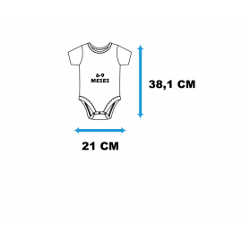 Producto diseñado en poliéster tacto algodón que es mucho más agradable y suave. Son bodies para bebé y están disponible en varias tallas desde 0 a 24 meses. Ten en cuenta que estos bodies dan alrededor de una talla menos respecto al tallaje europeo.
