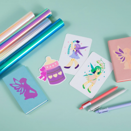 El vinilo adhesivo es uno de los materiales para manualidades más populares. Está compuesto de PET y PVC. Después de cortar el diseño con la Crafter, el vinilo adhesivo se adhiere fácilmente a muchas superficies diferentes, como tazas, vasos, espejos, plástico, tablas, etc.