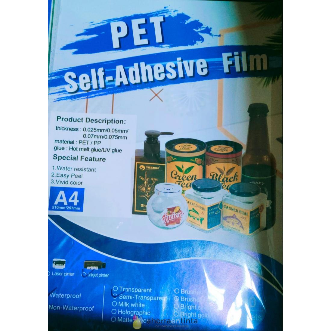 El papel adhesivo de vinilo translúcido PET es transparente entre un 50 % y un 60 %. La calidad de impresión es excelente y absorbe la tinta rápida y profundamente. Está listo para usar en pocos minutos después de la impresión.